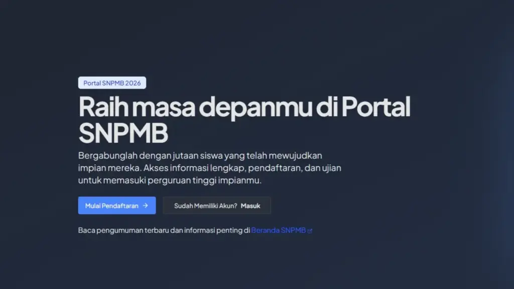 Pendaftaran UTBK-SNBT 2026 secara resmi akan dibuka pada tanggal 25 Maret 2026 dan berlangsung hingga 7 April 2026. Proses ini merupakan jalur seleksi nasional masuk PTN berdasarkan tes yang dapat diikuti oleh lulusan tahun 2024, 2025, dan 2026 melalui sistem akun SNPMB yang sudah terintegrasi.